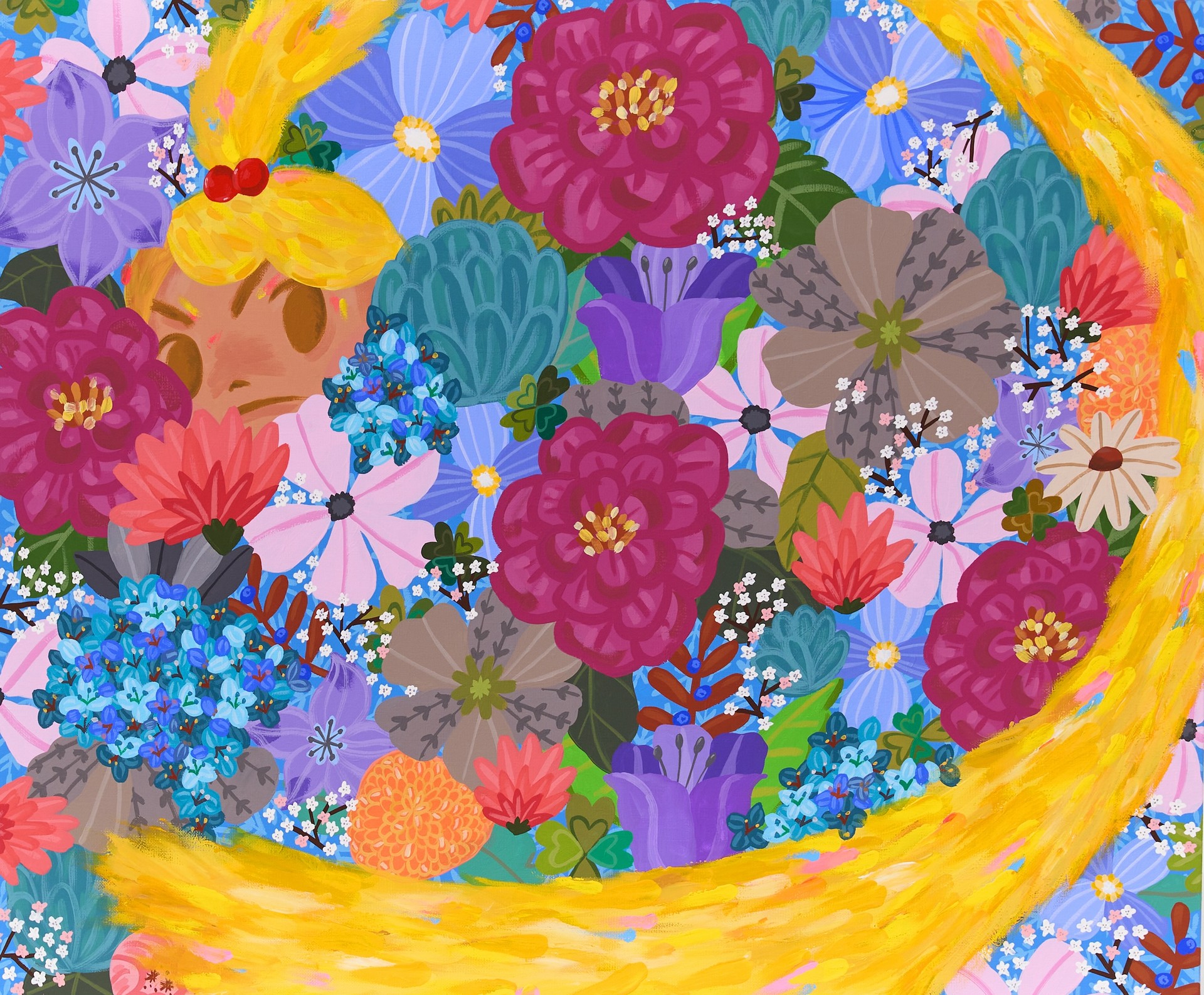 일러스트를 전공한 작가는 동화적인 색감 속에 현대인의 감정과 서사를 담아내는 작업을 이어간다. 캔버스 외에도 스테인리스, 펀칭니들과 같은 예상 밖의 소재들을 결합하며 섬세하게 구축해나간다. 작가는 이러한 재료적 실험을 통해 따뜻함과 단단함, 부드러움과 긴장감이 공존하는 세계를 만들고, 그 속에서 조용한 위로를 건낸다.